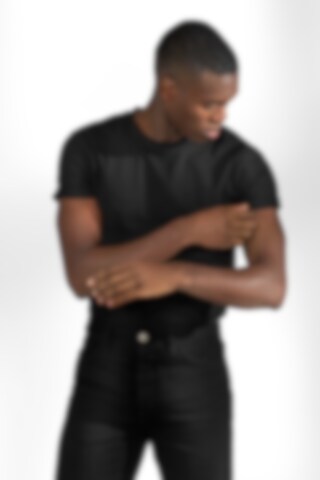 Notre T-shirt classique à col rond regular avec une coupe ajustée, maintenant avec des manches retroussées. Le modèle a des manches retroussées qui sont fixées avec une couture discrète pour s'assurer qu'elles ne se déroulent pas.