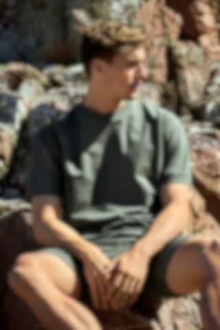 Ce T-shirt oversized est confectionné dans un tissu épais avec un intérieur bouclé doux. Son mélange coton-stretch offre un confort absolu et une belle fluidité. Doté d’un col côtelé et de manches retroussées, il s’associe parfaitement avec un short de détente ou un jean pour un look décontracté.
