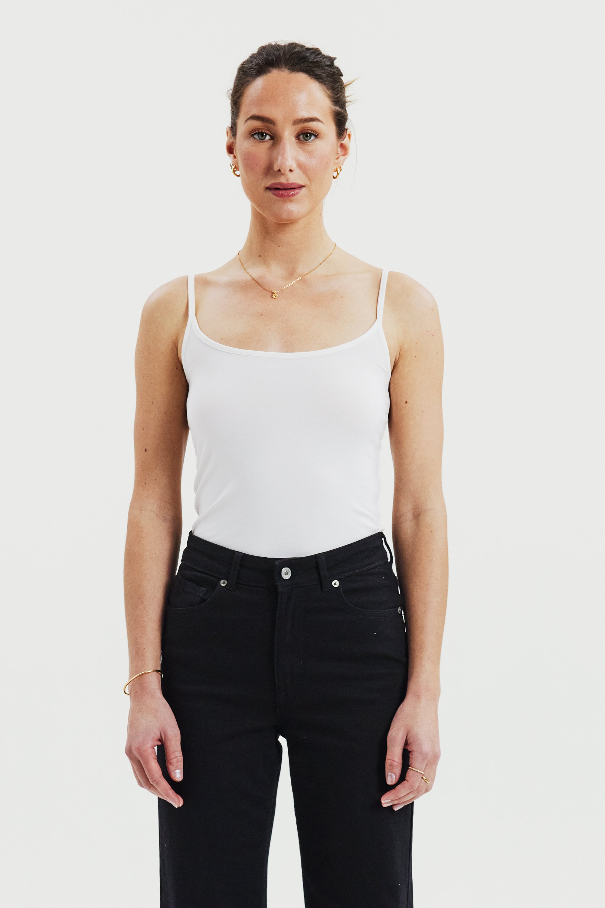 Débardeur femme / top à bretelles fines avec encolure arrondie. Confectionné en lyocell doux avec stretch pour une coupe souple et près du corps. La matière légère et respirante rend ce débardeur particulièrement confortable à porter toute la journée. Un top polyvalent pour femme, parfait comme première couche sous d’autres vêtements ou porté seul lors des journées chaudes d’été.