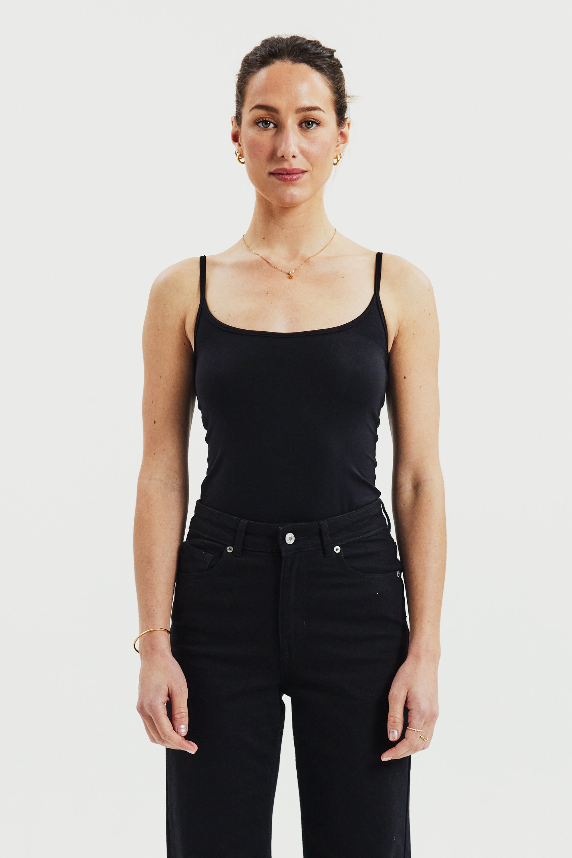 Débardeur femme / top à bretelles fines avec encolure arrondie. Confectionné en lyocell doux avec stretch pour une coupe souple et près du corps. La matière légère et respirante rend ce débardeur particulièrement confortable à porter toute la journée. Un top polyvalent pour femme, parfait comme première couche sous d’autres vêtements ou porté seul lors des journées chaudes d’été.